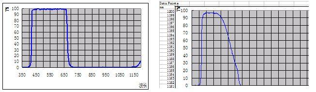 340nm-370nm Tabs<2% 420nm-450nm Tabs>85% 450nm-500nm Tabs>90%