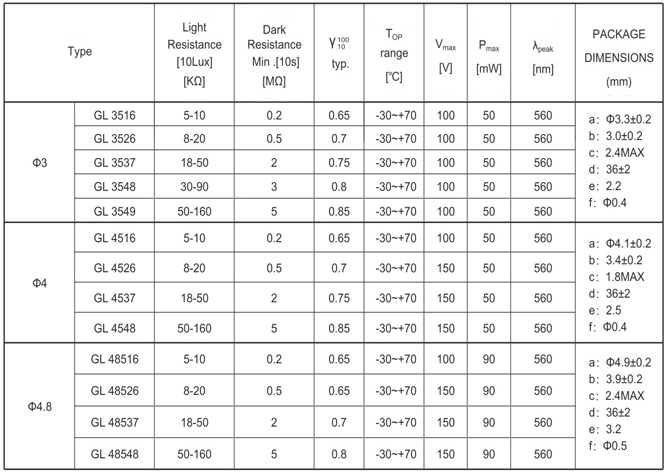 Resin Package Photocells Series1