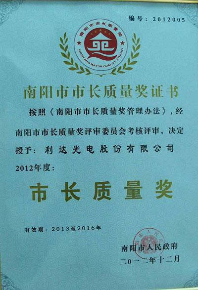 利達光電榮獲2012年度南陽市“市長質(zhì)量獎”